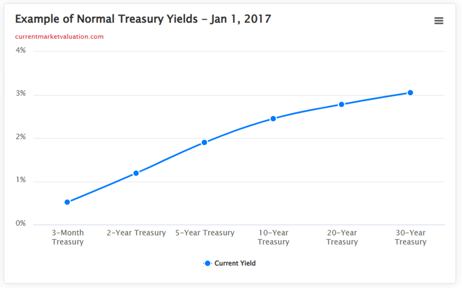 When a yield curve is in a normal state, longer term bonds pay more than shorter term bonds… as they should. The further you go out into the future the more uncertainty.