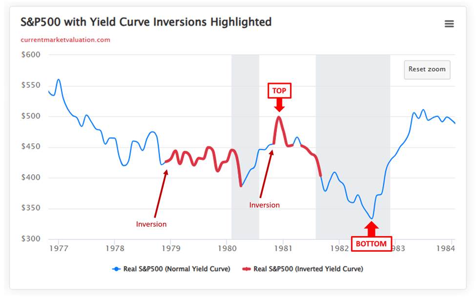 Between the first inversion in November 1978 and the bottom in 1982. The market corrected 26%... if you measure between the two recessions, 1980 – 1982 the market corrected 34%.