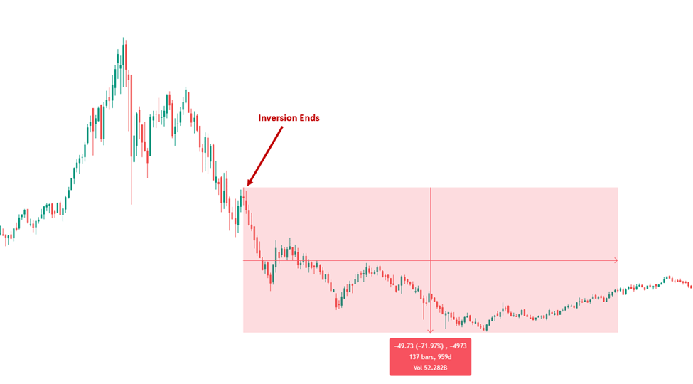 7 months from when the inversion ended, we witnessed the peak of the market which was not reached again for almost 10 years.