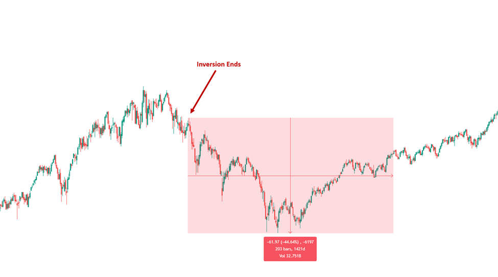 Here is a chart of the S&P500 once the inversion ended, and how much it continued to correct.
