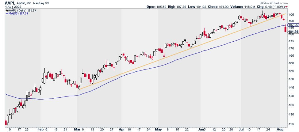This is a major red flag. Apple is the biggest, most important stock in the entire market.