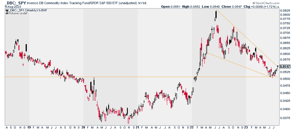 In other words, commodities could start outperforming stocks in a major way in the back half of 2023.
