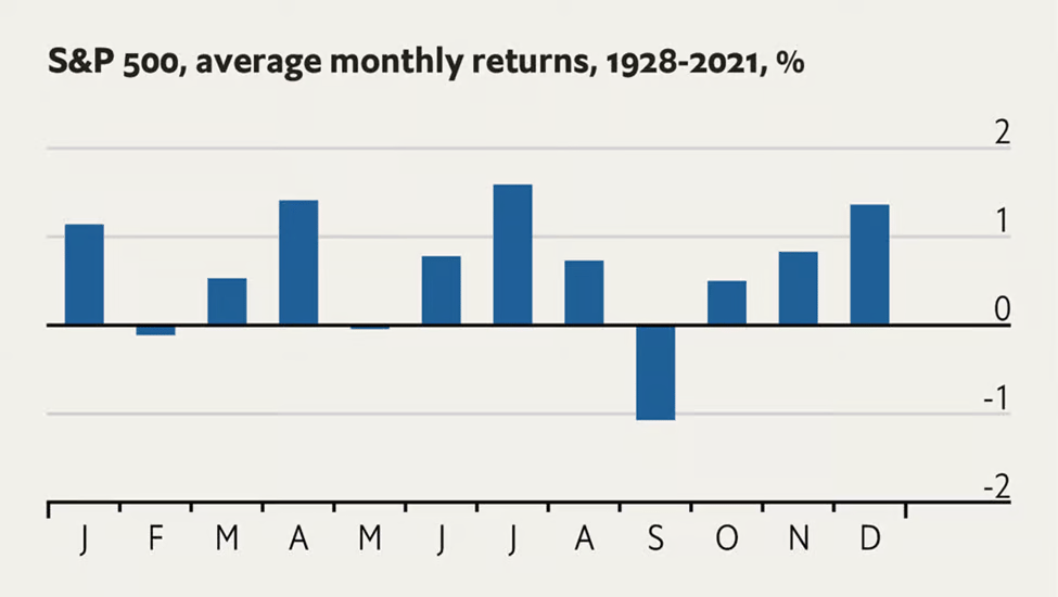 Since 1928, September has been the weakest month of the year for stocks. On average, stocks have fallen about 1% during the month of September. No other month even comes close.
